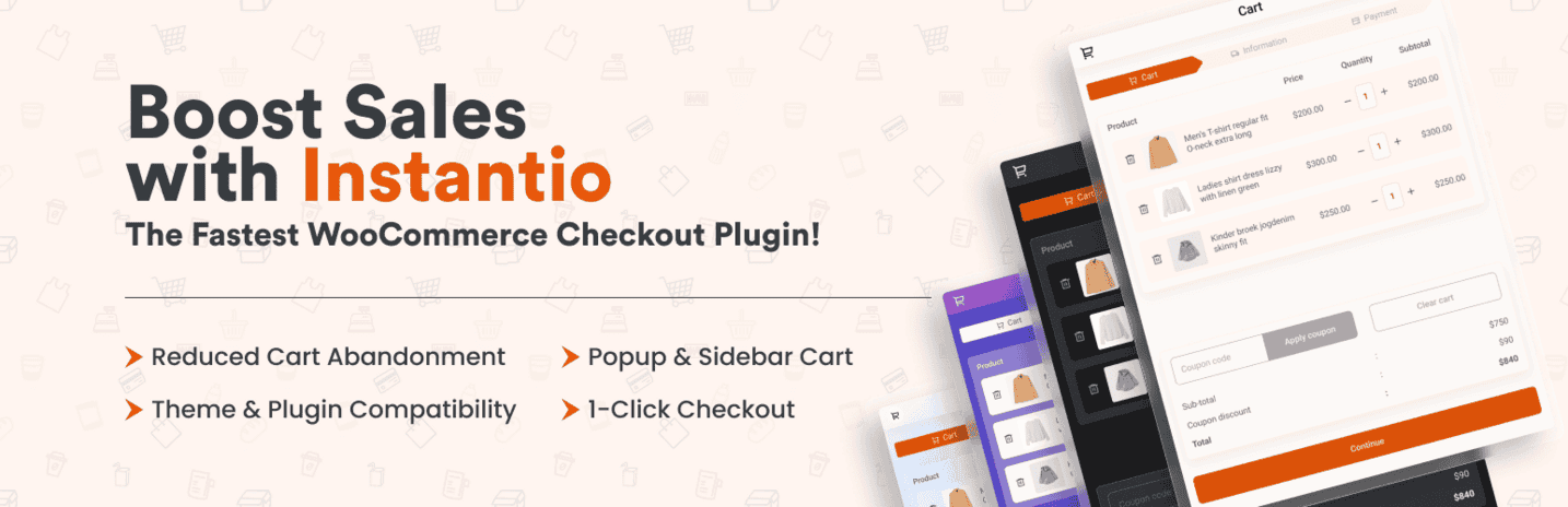 Instantio to wtyczka do WooCommerce, która ma na celu uproszczenie procesu realizacji zamówień, zmniejszając wskaźnik porzucania koszyków. Jest idealnym rozwiązaniem dla właścicieli sklepów internetowych, którzy chcą poprawić doświadczenia zakupowe swoich klientów i zwiększyć wskaźniki konwersji. Dzięki prostemu interfejsowi i zaawansowanym funkcjom, użytkownicy mogą łatwo zintegrować tę wtyczkę ze swoją stroną WooCommerce.